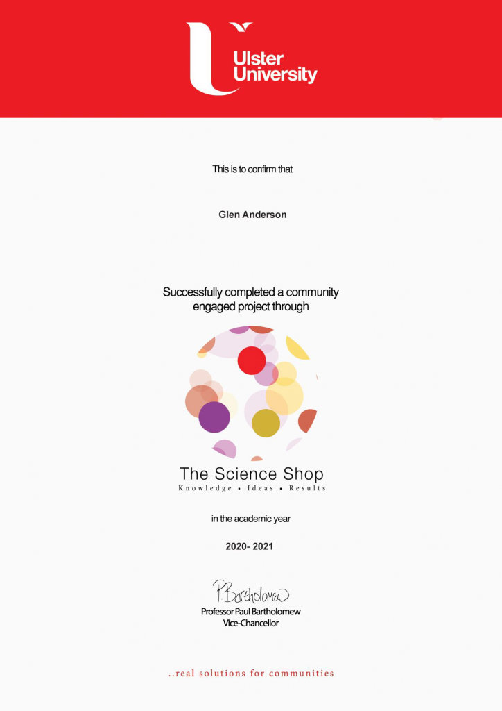 Proud to announce that the project myself, Rachel Burke & Andy Reid worked together on has won the Science Shop Digital Media Award 2020-2021.